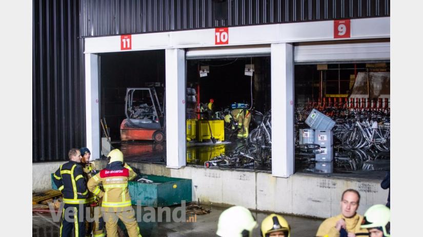 VERWOEST Volgens de woordvoerder van de veiligheidsregio zijn zo'n 36 fietsen verwoest door de brand. Daarnaast zijn diverse accu's in brand gevlogen: in totaal zouden dat er zo ongeveer 100 zijn geweest. Ongeveer 50 accu's zijn door de brandweer uit voorzorg in een bak met water gezet.