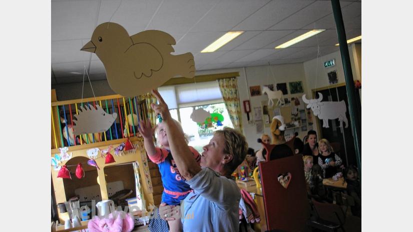 In de speelruimte waren tien getekende blanco dieren opgehangen, eerst nog 'verstopt' tussen kranten, die peuters met hun ouder mochten uitpakken. Deze tien dieren komen gedurende het komende feestjaar aan bod in verschillende thema's en uitstapjes. Iedere maand wordt een dier door de peuters versierd, zodat aan 't einde van dit speelzaaljaar (eind juni, begin juli 2017) alle dieren klaar zijn en ze samen het grote jubileumfeest kunnen gaan vieren.