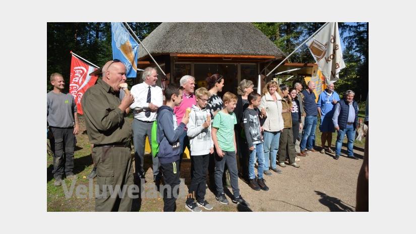 Het beheer werd de afgelopen drie jaar door een Eper ondernemer gedaan, maar dat conflicteerde met de gemeente, waardoor nu een man, die vroeger het hertenkamp verzorgde, weer in de arm is genomen. Dat is Fred Mekelenkamp, links op de foto, die zich net als de samengedromde menige een gratis versnapering van de familie Van Barneveld goed laat smaken. De menselijke keten trok vanmiddag veel aandacht van televisie en landelijke media. Zie voor uitgebreide reportage de papieren versie van Veluweland aanstaande woensdag.