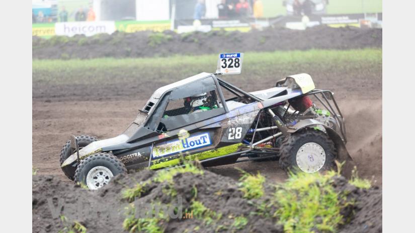 't LOO Stichting Circuit Oldebroek heeft afgelopen weekend zijn debuut gemaakt als organisator van de Eurol NK Autocross. De beste autocrossers van Nederland reisden massaal af naar 't Loo waar een zwaar zandcircuit voor hen klaarlag. De zware regenval in de nacht van vrijdag op zaterdag en zaterdagochtend had ervoor gezorgd dat de baan er nóg zwaarder bij kwam te liggen. Dankzij Van Werven, die met groot materieel was uitgerukt, kon de baan toch nog redelijk goed geprepareerd worden. Rond de middag brak het zonnetje door en was het aangenaam vertoeven langs de baan en voor de sponsoren ook in de VIP-tent.