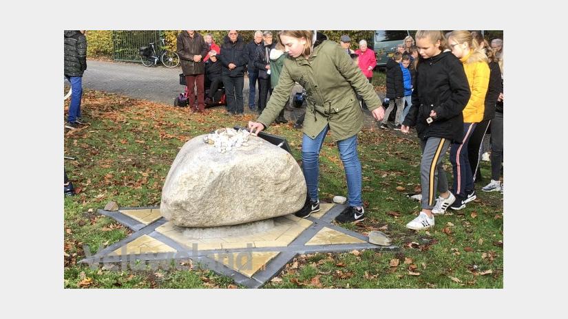 Na een minuut stilte werden volgens joodse traditie steentjes gelegd bij het monument door de leerlingen maar ook door andere aanwezigen. Onder hen wethouder Leen van der Maas namens het Nunspeetse college van burgemeester en wethouders.