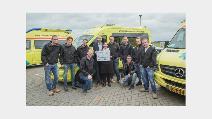 Het was zaterdag open dag bij de Veluwse Wens Ambulance, vanwege het vijfjarig bestaan. De cheque kwam als een grote verrassing. Het mooie bedrag was na aftrek van alle kosten overgebleven van de twee tentfeestavonden vorige week.