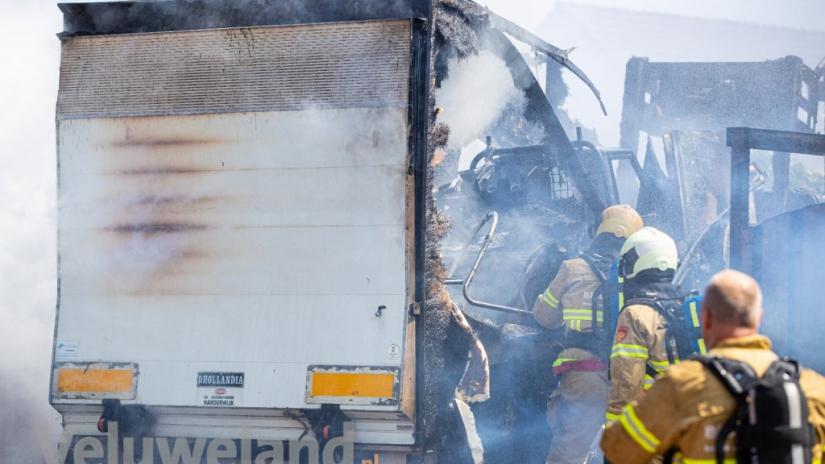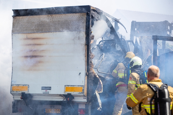 Foto: De vrachtwagen is volledig uitgebrand. © Stefan Verkerk