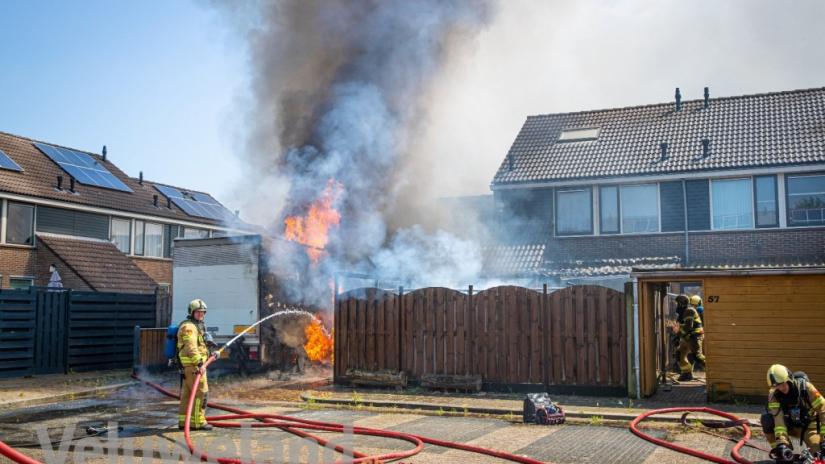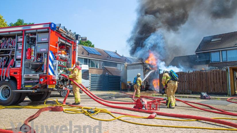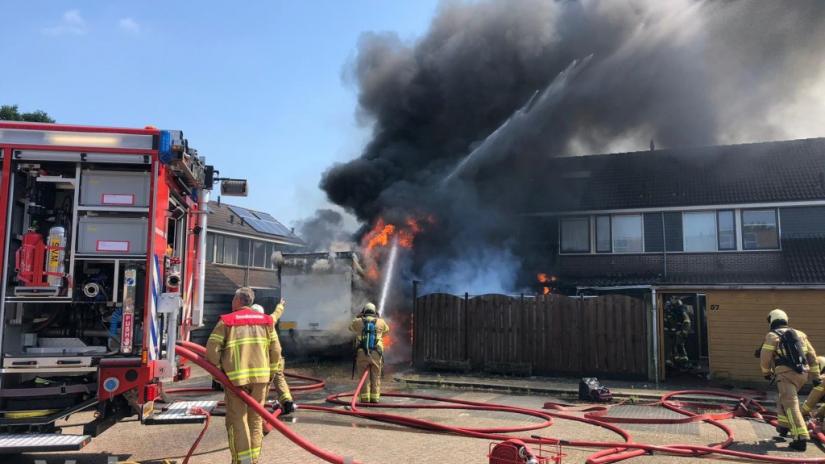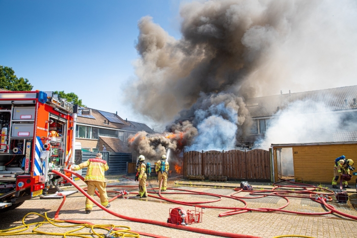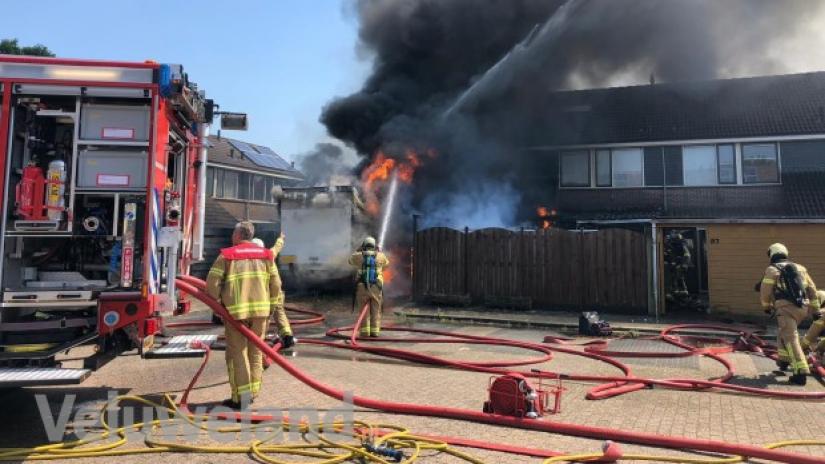 Ook de aanbouw van de woning heeft vlam gevat. Inmiddels is de situatie onder controle en is het vuur uit. Er is forse schade. ![]()