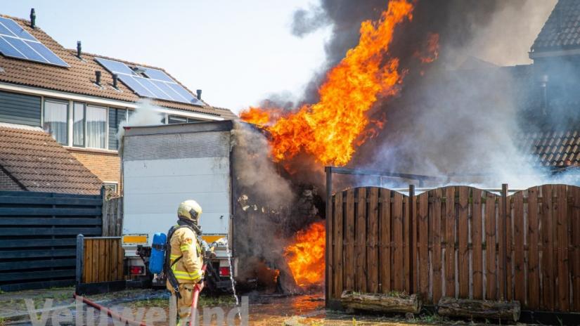 WAPENVELD Een ijscokar in een vrachtwagen is woensdagmiddag vermoedelijk in brand gevlogen. De vrachtwagen staat op een oprit bij een woning in Wapenveld.