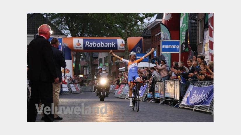 Hofman krijgt de beloning voor zijn aanvalslust. De Nunspeter speelt geen rol in het Veluweklassement en zet op een dagzege. Hij ontsnapt al vroeg in de koers, krijgt 12 seconden voorsprong, maar moet zich na 10 rondjes weer gewonnen geven. Hoewel de organisatie twee bochten uit het parcours heeft geschrapt, is er toch een valpartij. Met het rondebord op 22 wordt de wedstrijd stilgelegd als Harderwijker Dylan van Zijl op de grond ligt. De koers wordt met 7 rondjes ingekort en dan probeert Hofman het nog een keer. Door afstopwerk van zijn Sensa-ploeggenoten pakt hij 20 seconden. Bij elke finishpassage moedigen zijn fans hem aan. Dijkstra en Bos proberen het nog, maar Hofman houdt stand en komt solo over de streep.