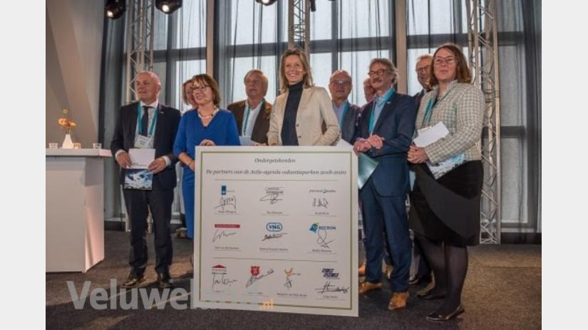 VELUWE Er komt een landelijke aanpak voor vakantieparken. Onderdeel daarvan is een Rijksbijdrage van 400.000 voor het Gelderse ondermijningsproject Ariadne. Minister Kajsa Ollongren, gedeputeerde Bea Schouten, gemeenten, Recron en anderen ondertekenden donderdag de actie-agenda vakantieparken op de Vakantieparkentop bij Radio Kootwijk. Gelderland is blij met de actie-agenda en de rijksbijdrage: ,,Samen met de Veluwse gemeenten, waaronder Elburg, Heerde, Nunspeet, Oldebroek, werken we in Gelderland al vijf jaar aan dit probleem. Heel fijn dat onze Gelderse samenwerking wordt verbreed. We kunnen heel veel zelf maar hebben voor sommige onderwerpen echt het Rijk nodig'', aldus gedeputeerde Bea Schouten.